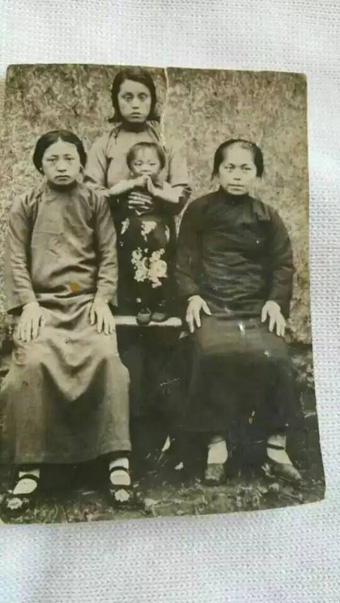 照片上三代同堂,是我的两个奶奶和大姑以及大姑家的表姐。照片中的人早已在历史的风尘中作了古,就连那个婴儿如今也是满头银发的耄耋老人。