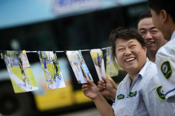昨天是中国城市“无车日”,为倡导绿色出行理念,公交特9路车队工会在场站开办摄影展,展示各种绿色出行的方式。过往乘客等车时都能看到。特9路职工为办摄影展,提前一年开始准备,遇到好看的绿色出行画面、认识骑行的朋友,都随时掏出相机留下画面。“绿色出行不是作秀,是日常最普通、最应该坚持干的事儿。”职工葛然说。