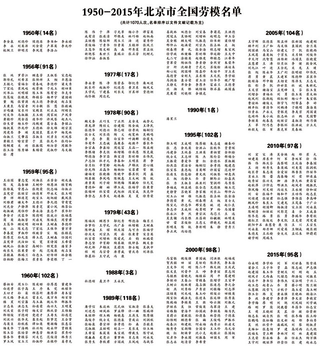 为了让人们铭记这些共和国的功臣,在全社会营造学习劳模、崇尚劳模、争当劳模的氛围,北京市总工会将对本市历届全国劳模事迹材料进行全面整理,结集成书;将建立“劳模墙”,把本市历届全国劳模名录镌刻于石,光耀社会。