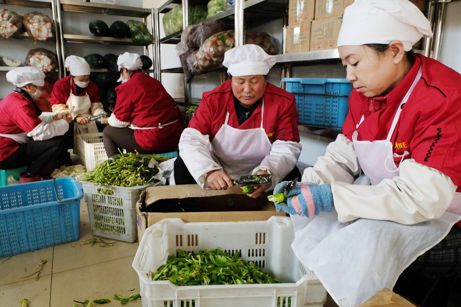 8点整,食堂里还有人在吃着早饭,而屋外,送菜的大车已经准时到达。管理员王希安一边张罗着喊人卸车过秤,一边认真检查着蔬菜的质量。