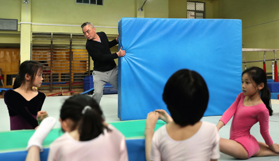 “注意动作要点,连贯,腰要绷紧……”4月7日,在朝阳区体育运动学校体操队的训练馆里,十几名小队员正在孙建华教练的指导下紧张地训练。