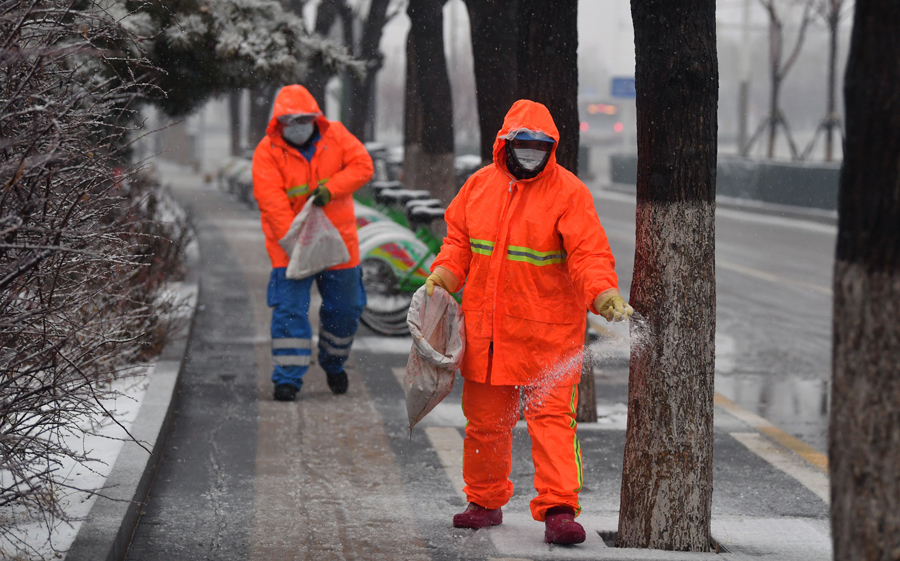 大风雪来了,各社区防控志愿者顶风冒雪上了。他们尽职尽责,坚守岗位,在各个检测点严密监测检查,严格排查、严格登记,确保万无一失;为了保障市民的安全出行,环卫工人冒雪上了,他们清扫道路,清理雪水,用最快的速度清理出了通勤道路;风雪肆虐,道路泥泞,公交车一如既往地在风雪中坚定前行。公交人迎着大风雪上了,他们运送乘客,温情服务,让每一位乘客都可以在安全环境下顺利抵达;风雪交加,市民出行更加困难,但快递小哥们却顶着刺骨的寒风上了,他们踏着厚厚的积雪,不顾路滑难行,把包裹和食品安全快速地送到市民手中;大风雪带来严寒,严重影响了职工的出行,但他们复工复产的心更加火热了。为了保障城市供给和防控需求,他们顶着恶劣天气快步上了,他们义无反顾地奔向工地与工厂,目前担负本市重点建设项目的企业已经全部复工……