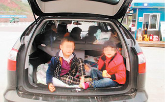 一辆核载5座的越野车竟然装了10个人,甚至连后备厢里面也“塞”进了2个娃。11月18日,这辆越野车在沪蓉高速小三峡收费站被重庆市高速执法二支队四大队执法人员现场查获,驾驶员受到罚款200元记6分的处罚。(11月20日《重庆晨报》)