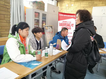 近日,朝阳区总工会携手朝阳区人力社保局、劲松街道社保所、劲松街道总工会共同举办了“促进就业增收 助力精准扶贫”为主题的2017年“春风行动”专场招聘会。