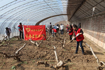 近日,北京市轨道交通建设管理有限公司40名职工志愿者来到顺义区北石槽镇西赵各庄村,帮助当地村民做卫生维护、修枝剪枝。这一村企联合的“乐农行动”也开启了轨道交通公司工会志愿服务工作的新模式。