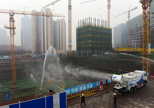 昨天,在丽泽金融商务区施工现场,被工人俗称为“雾炮”、“水炮”的降尘设备两炮齐发,对施工现场进行全方位的喷水降尘。丽泽金融商务区F02、F03、F05地块工程,由中国建筑第二工程局有限公司承担建设。据施工项目单位副书记韩才俊介绍,该工程面积为4.5万平方米,为了把施工引起的扬尘降到最低点,他们购置了全液压多功能抑尘车一部,自己研发安装了5门水炮,两架塔吊喷淋枪,每天对施工工地进行全方位喷雾降尘。