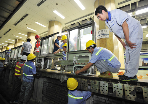 7月31日零时30分,地铁2号线首扇屏蔽门在安定门站试点安装。预计1、2号线屏蔽门最快将于2017年底完工。