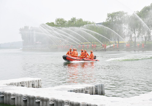 针对主汛期可能因极端天气引发的山洪、泥石流等灾情,北京市3日在奥林匹克水上公园举行模拟多种突发情况,动用无人机、警用直升机、水下救援面罩等多种专业装备,演练“水陆空”多种救援技战术的防汛应急救援综合实战演练。演练共调派520余名消防官兵、1架直升机,以及市急救中心4部救护车、市排水集团2部大功率排水车等应急救援力量。