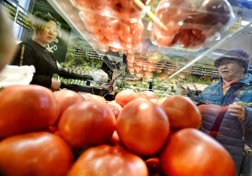 水果超市也卖菜啦!直径10厘米以上的西红柿9.9元一斤,白萝卜0.49元一斤,圆茄子1.99一斤……记者昨天在果多美广渠门店看到,新鲜优质的蔬菜价格优惠,附近居民都排起队购买。水果连锁超市果多美广渠门店、崇文门店、和平里店三店齐把蔬菜摆上了柜台。目前,东城区17个街道新增各类生活性服务业功能网点293个,东花市、交道口、朝阳门等街道已提前完成一个社区两个蔬菜零售网点的任务。2019年,东城区将新建或规范提升各类便民商业网点33个,建设6个社区商业便民服务综合体,实现每2万居民配置一个综合体的标准。