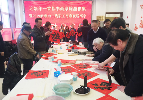 12月21日,北京职工书画协会“迎新年——翰墨雅集暨2019新春为一线职工写春联送福字”活动启动仪式在北京职工服务中心举行。来自全市50多位职工书画家参加了活动启动仪式,为职工书写了300多幅春联、福字和年画。据介绍,作为北京市总工会“两节”送温暖活动项目之一,从即日起到春节前,北京职工书画协会将组织职工书画家分赴基层单位、重点工程项目工地为职工写春联、送福字、画年画。