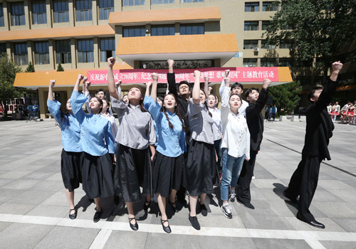为了迎接新中国成立70周年和五四运动100周年,市委教育工委、北京舞蹈学院昨天联合举办“舞动梦想 歌唱祖国”主题教育活动。作为中国唯一专门化的舞蹈教育高等学府,北舞学子用激昂的诗篇、青春洋溢的歌声、优美的舞姿呈现出一场高水准的创意快闪,为祖国献上深情祝福。该校领导和师生则在台下挥舞国旗助威,并在活动最后共同祝福祖国。