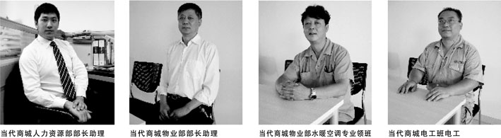 我是当代商城的一名老员工,自1995年9月1日来商城工作至今已经有19年了。在这19年里,先后从事过水工、焊工、司炉工、空调工等重要工作。我现在是商城物业部水暖空调专业领班。我们每天的工作是和班组人员,一起管理和精心维护商城的空调制冷机、空调风机、冷却塔、水箱等重要设备。作为一名专业的管理者,在日常工作中我以多年的工作经验和专业技术,带领同事一起不断的提高专业技能,以身作则,通过不断学习来完善自己,并将自己的工作经验、技术传授给同事,使他们能更快、更好地适应和学习,更好地为商城服务。在这次的评聘中,我被评为四星级员工。
