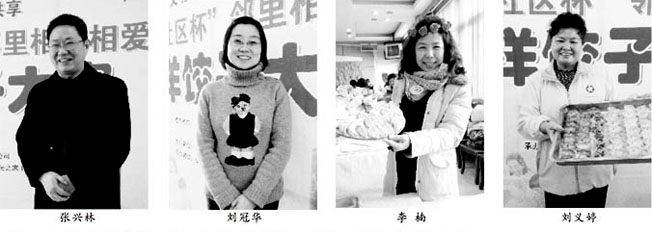 本次花样饺子大赛,本着促进社区之间邻里相亲相爱的初衷,从去年十月底开始策划组织并发动社区居民报名。到去年的12月23日之前,已有来自右安门街道的16个社区共500多人报名参加。从去年12月29日起至今年1月20日止,活动分别在翠林一里、翠林二里、玉林里、东滨河等多个社区开展了九场预赛。每场预赛夺得冠军的参赛队,2月7日下午再聚在一起进行决赛,争夺总冠军。